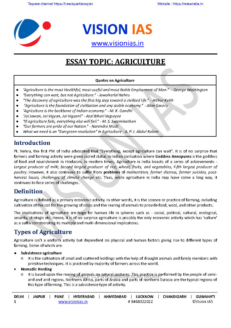 1.ESSAY TOPIC: AGRICULTURE