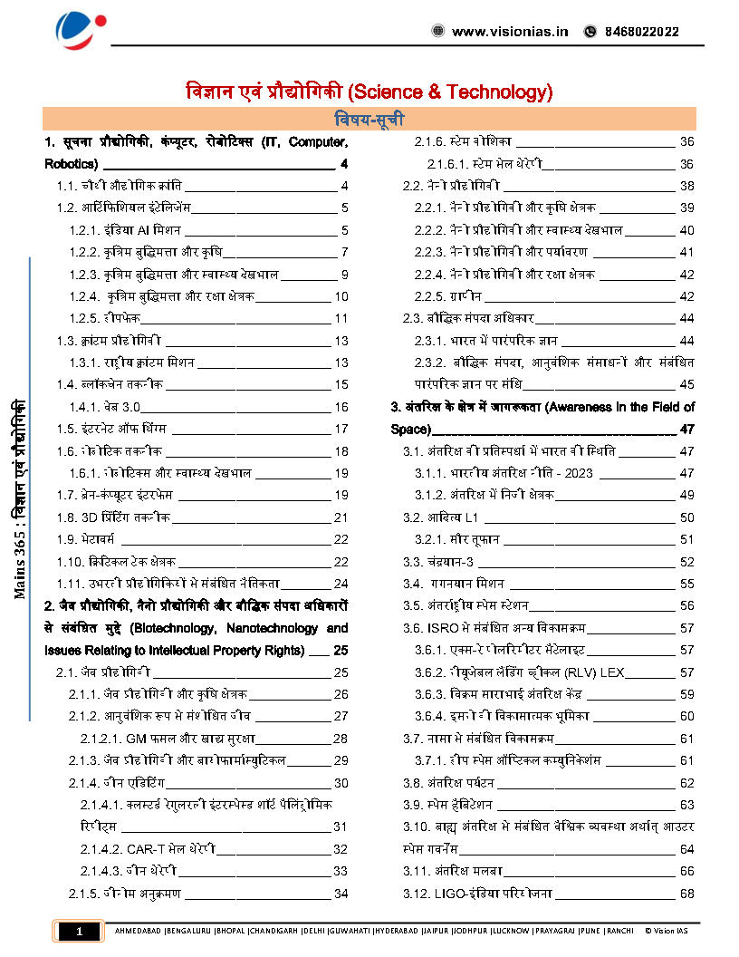 Vision Ias Mains 365 Science & Technology (विज्ञानं एवं प्रौद्योगिकी) 2024 Hindi Medium Xerox