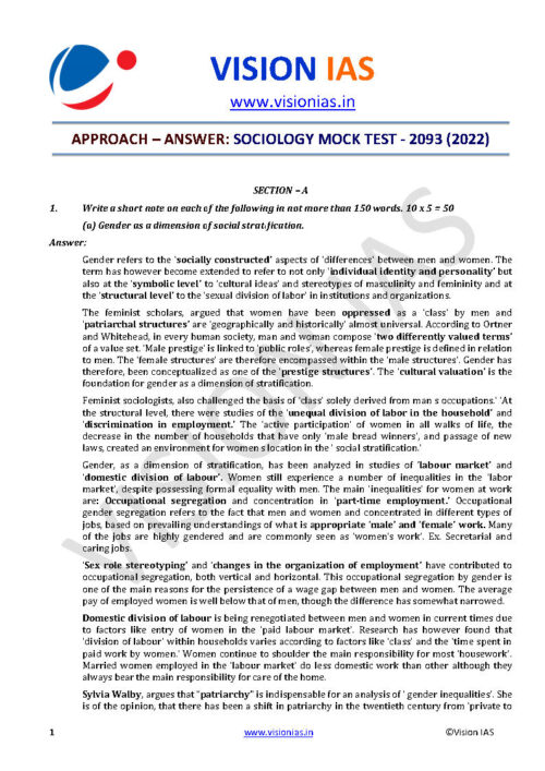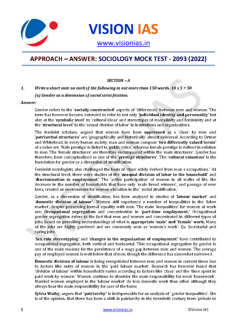 Vision IAS Sociology Optional Test Series 01 To 07 Questions With Solutions English Medium 2022