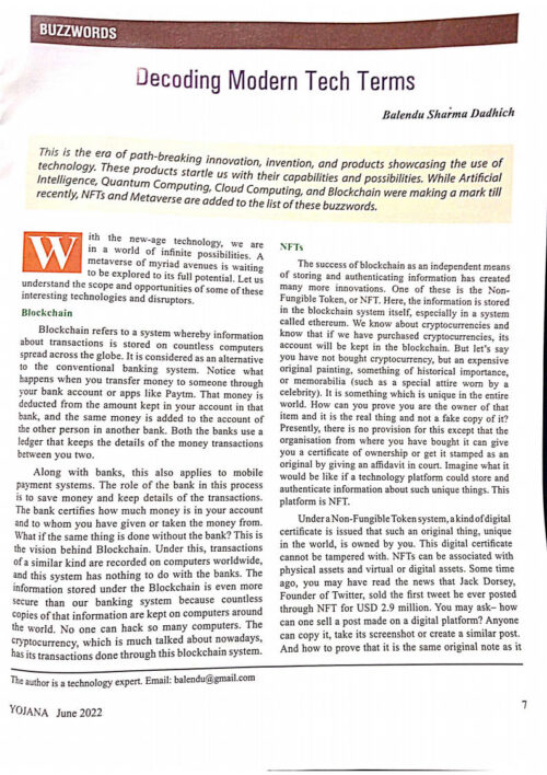 Yojana Monthly Magazine New Age Tech June (Xerox) English Medium 2022